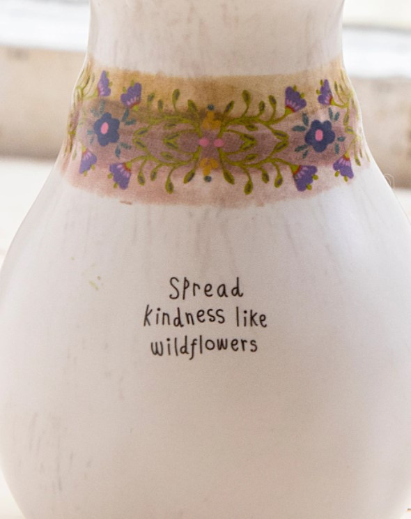 Its uplifting sentiment, “Spread kindness like wildflowers,” makes it more than just a vase—it’s a daily reminder to share kindness wherever you go.