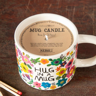 Enjoy warmth with the Natural Life Hug in A Mug Candle, a Neroli-scented candle in a reusable ceramic mug, perfect gift idea.