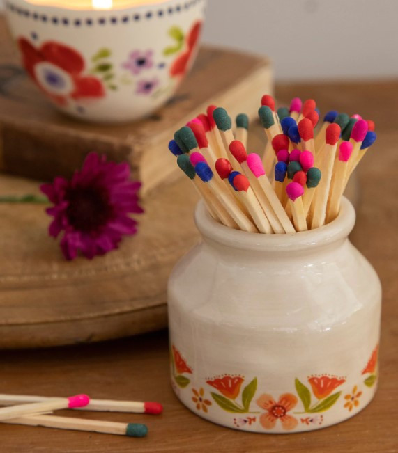Shop Natural Life Matchstick Crock. Ceramic floral match holder with 70 colorful matches, perfect for candles and home décor.