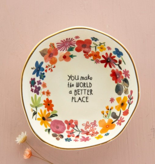 Natural Life Perfect Little Trinket Bowl – Better Place is a ceramic dish with floral design, perfect for jewelry and meaningful gifts.