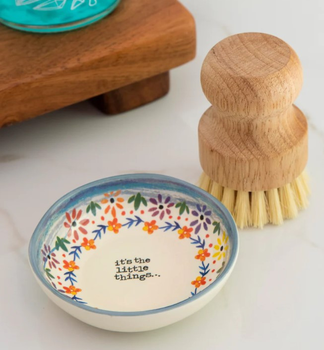 The Natural Life Scrub Brush & Dish Set isn’t just adorable—it’s functional. The stoneware dish holds the brush upright, keeping it dry and hygienic. Hand wash recommended to maintain the vibrant design and quality. Perfect for any kitchen looking to combine style with everyday utility.