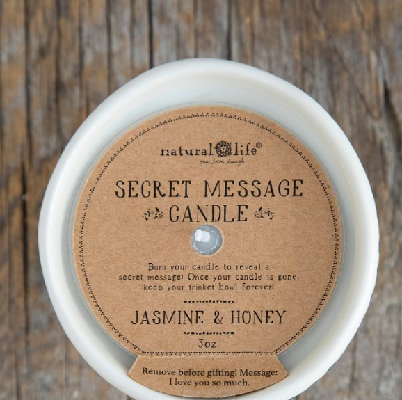 Shop Natural Life Secret Message Candle – Love You So Much. Jasmine honey scent reveals hidden message, perfect romantic gift.