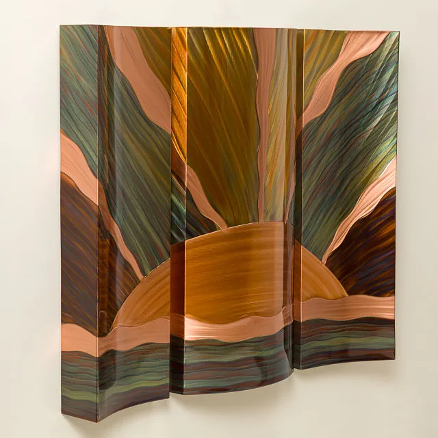 Crafted by Minnesota-based artists Daniel & Frances Hedblom, this artwork is more than decoration—it’s a celebration of craftsmanship. Each copper panel is hand-ground, flame-treated, and sealed to preserve its vibrant colors, ensuring a timeless display without chemical paints. Mounted on gently curved wooden panels, this piece serves as a centerpiece that sparks conversation and uplifts the spirit.