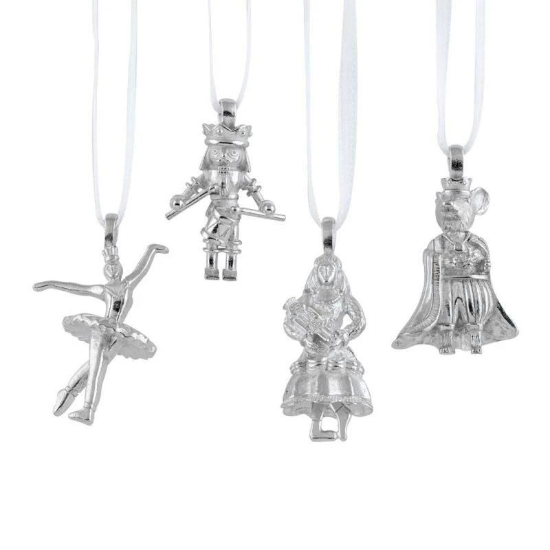 - Set Includes: 4 pewter Nutcracker-inspired ornaments