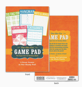 The On-The-Go Game Pad comes loaded with five timeless activities including Hangman, Tic-Tac-Toe, and more, making it an ideal boredom-buster for any age. With 60 perforated sheets, each game has 12 sheets along with clear instructions. All you need is a pencil to start playing. Lightweight and easy to carry, it fits perfectly into a backpack, purse, or glove compartment—ideal for travel, road trips, or spontaneous game sessions. Recommended for ages 7 and up.