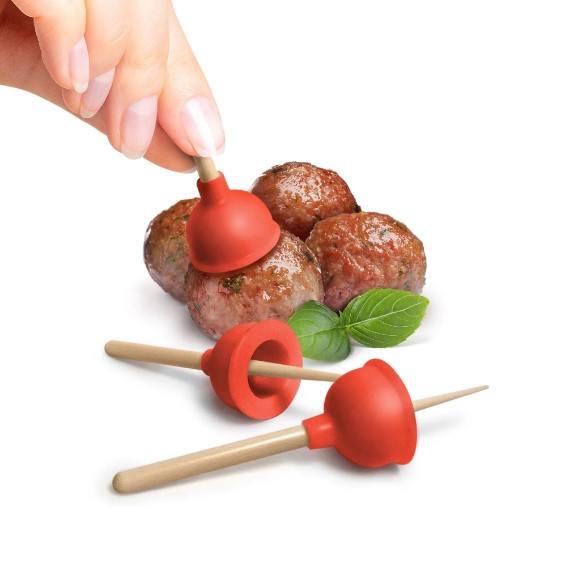 Add humor to your table with Party Poopers Party Picks, 12 reusable plunger-themed picks perfect for cocktails and appetizers.