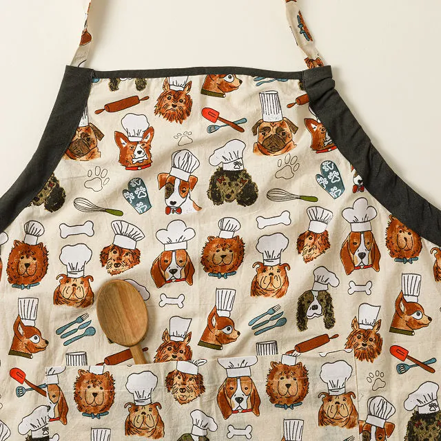 Patisserie Pup Apron features cute chef dogs on soft cotton, with adjustable fit and pocket for fun, stylish cooking and baking.