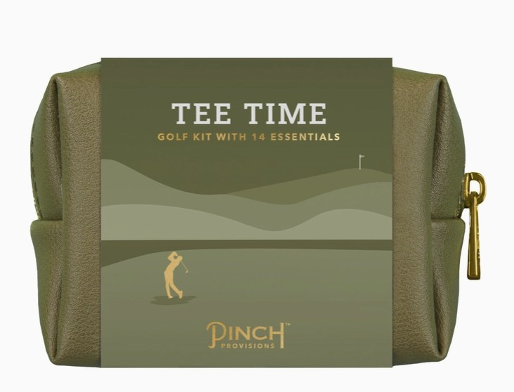 Pinch Provisions Tee Time Golf Kit includes 14 must-have golf and care essentials in a compact pouch for comfort and performance.