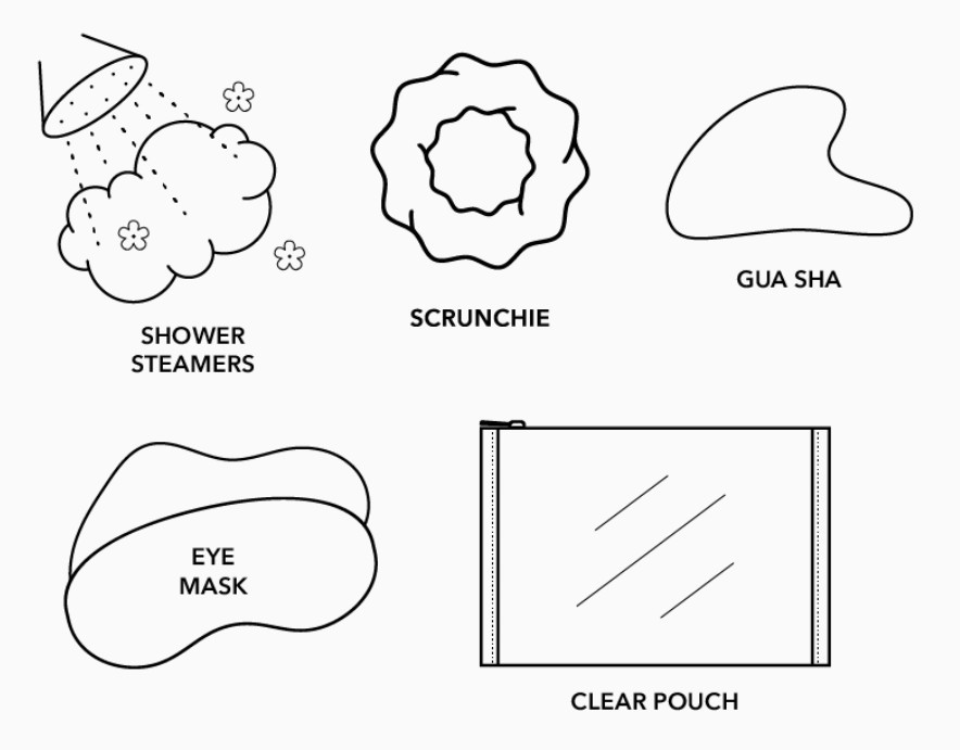 Use the silky sleep mask to enjoy restful sleep or quick relaxation breaks. Incorporate the gua sha into your skincare routine to promote circulation and relieve tension. Style your hair with the soft scrunchie while avoiding damage, and enhance your shower experience with the eucalyptus steamer for a spa-like aroma. All items are conveniently stored in the stylish pouch for easy access anytime.