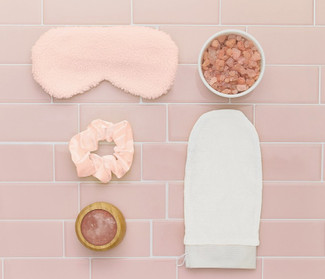 Start your routine by adding the lavender bath salts to warm water for a calming soak. Use the Himalayan pink salt massager to gently relieve tension and improve circulation. Follow up with the exfoliating mitt to smooth and refresh your skin. Complete your relaxation session with the eye mask and secure your hair with the silky scrunchie for added comfort.