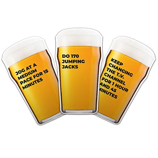 Pint Sized Workouts Deck includes 100 fun exercises to burn calories from a pint of beer and keep your daily workouts engaging!