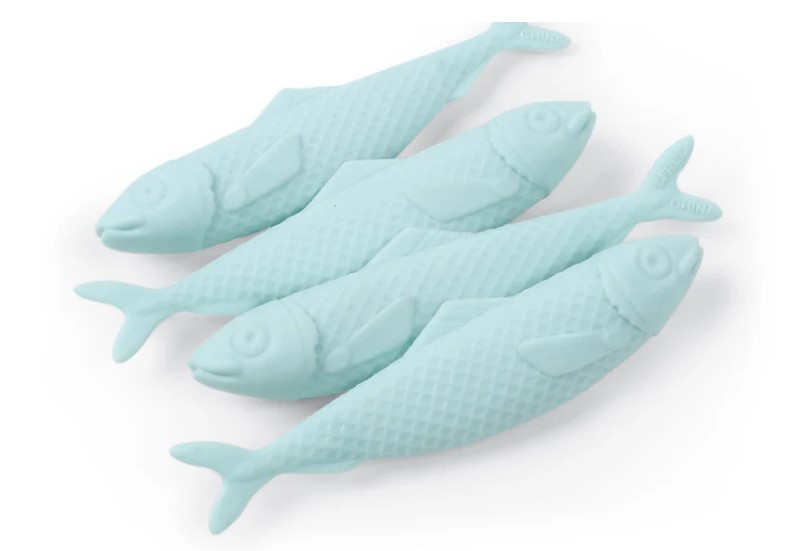 - Quantity: 4 sardine-shaped erasers per tin