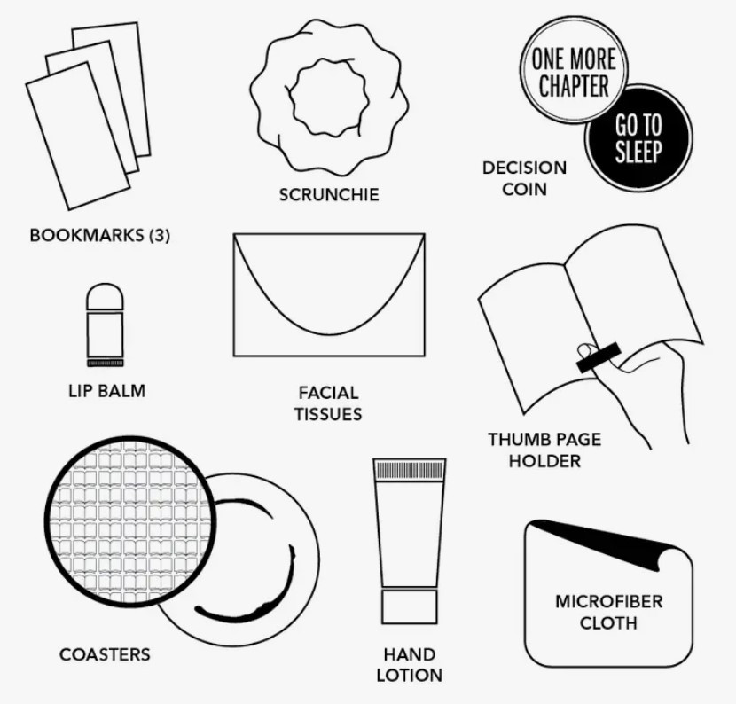 The kit is designed to make your reading moments more enjoyable and comfortable. Use the thumb page holder for hands-free reading, the coaster to protect your surfaces, and the lotion and lip balm to pamper yourself while diving into your favorite book.