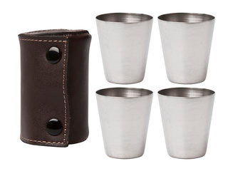 Keep the fun anywhere with Shot Glasses with Leather Case. Set of 4 mini glasses, portable, stylish, and perfect for parties.