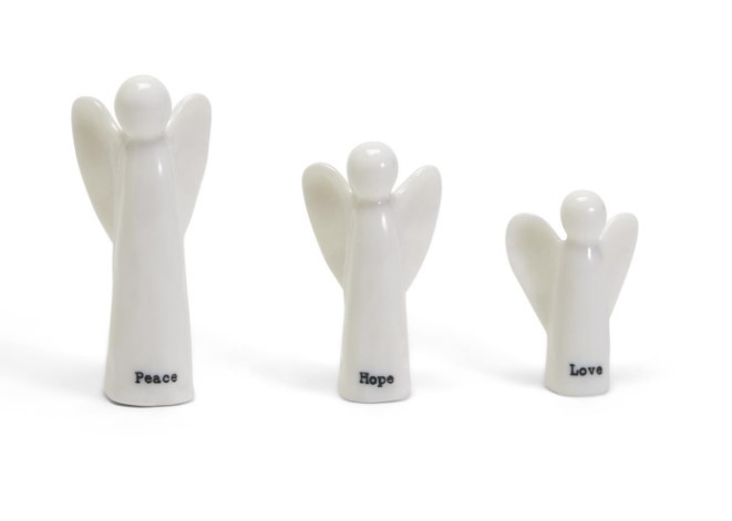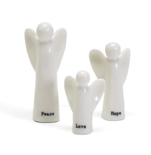- Set Includes: 3 porcelain angels (Peace, Hope, Love)