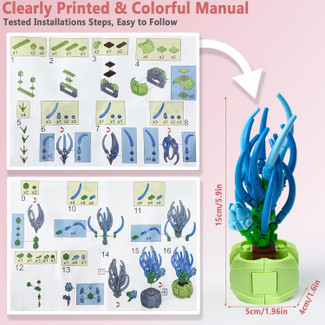 Each set includes 30 to 50 pieces made from high-quality materials, providing a satisfying building challenge. The vibrant colors and varied shapes create visually appealing mini plants that brighten up any environment.