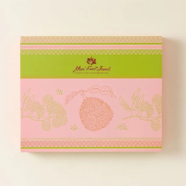 Crafted by Lin and Chris Ter Horst, each element of the Taste of Hawaii Gift Box captures the heart of Hawaiian indulgence. The duo transforms locally grown fruits—like passion fruit, guava, and mango—into delicate confections made in small batches for superior freshness and flavor.