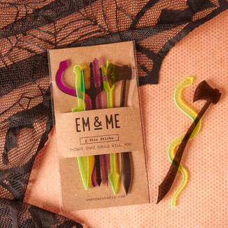 Make your drinks eerily entertaining with the Things That Could Kill You Stir Sticks, Set of 6. Inspired by Halloween and true crime, each stir stick features a unique design—from knives and axes to tridents and rattlesnakes—adding a fun, darkly playful element to any beverage. Discover more spooky or fun gifts at Gift for All Occasions.