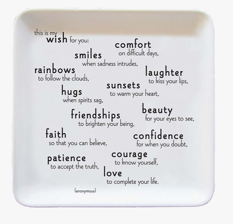 • Design: Square dish with inspirational quote and message