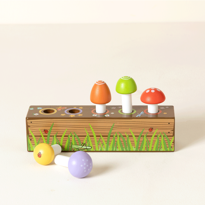This enchanting garden sparks creativity and curiosity. Its vibrant colors and playful design make learning delightful: toddlers match mushrooms to the garden slots, pressing them down to watch them spring back up. It’s more than a toy—it’s an interactive learning tool that fosters early developmental skills in a fun, tactile way.