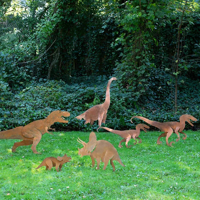 Place the sculptures in your garden, lawn, or backyard for an instant prehistoric makeover. Secure them with the included stakes, and watch as the steel patina naturally matures over time, adding character and depth to the design.