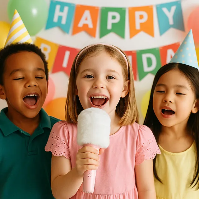 Sing and play with the Voice Changing Karaoke Microphone Speaker, featuring wireless Bluetooth, fun voice effects, and rich sound.