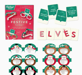 Get everyone laughing this holiday season with What’s That Festive Thing? A fun and festive guessing game, it’s perfect for family gatherings, dinner parties, or holiday celebrations. Pop on the silly glasses, ask yes-or-no questions, and guess what’s on your head—no acting or moving required!