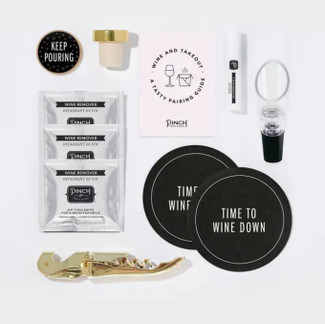 Relax, sip, and savor the moment with the Wine Night Mini Kit by Pinch Provisions. Perfect for solo evenings, small gatherings, or gifting to a wine lover, this compact kit contains 11 essentials to elevate any wine experience. From a gold-tone corkscrew to a handy aerator and coasters, every item is thoughtfully selected to make your “wine down” moments effortless and enjoyable.