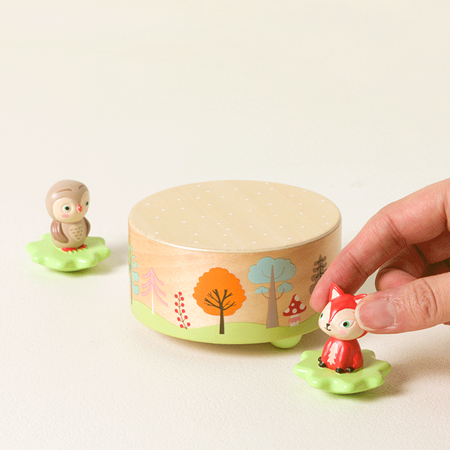 - Design Features: Spinning fox and owl figurines, illustrated woodland base, wind-up mechanism