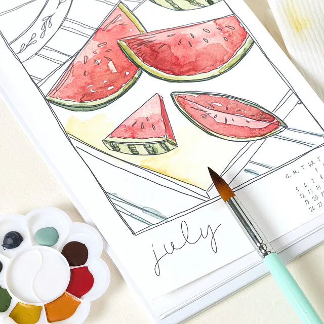 • Includes: Calendar with stand, watercolor set, brush, scannable QR code
